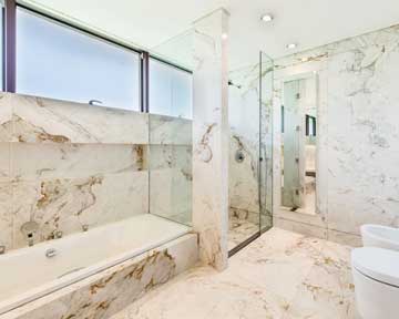Resistência, aliada a fáceis limpeza e manutenção, fazem com que mármores e granitos sejam ideais para revestimento de pisos, sendo comum sua aplicabilidade em áreas de grande circulação como igrejas, shoppings centers, aeroportos, entre outros.